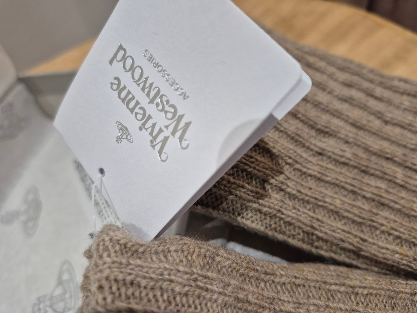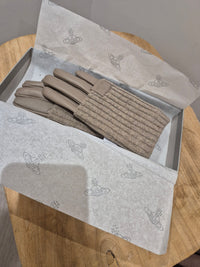 Give the gift of designer style this Christmas with these Vivienne Westwood Time Machine Gloves in warm oat. Featuring touchscreen-responsive fingertips, they let you navigate your phone or tablet without exposing your hands to the cold. A preloved find that combines iconic British fashion with modern convenience!