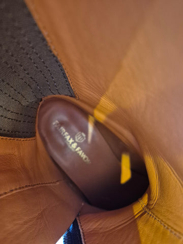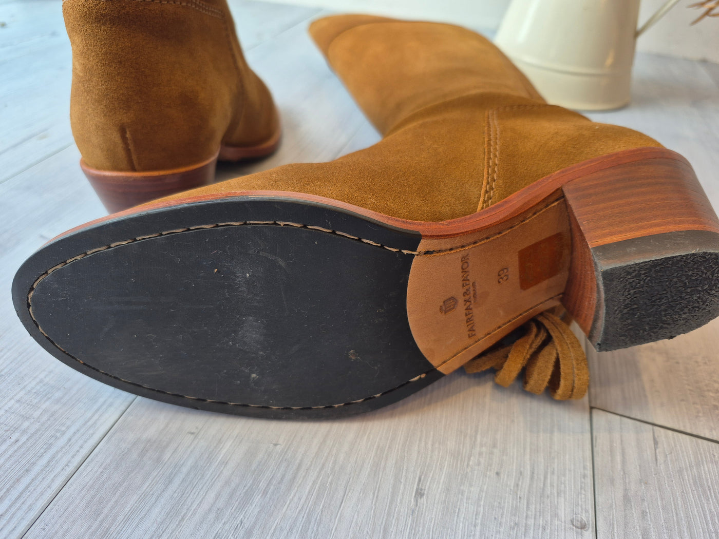 These signature boots from British luxury lifestyle brand Fairfax & Favor showcase exquisite craftsmanship with their soft suede finish in a striking tan and orange palette. Designed with a refined heeled silhouette, they combine elegance and durability, making them perfect for elevating your wardrobe this Autumn.