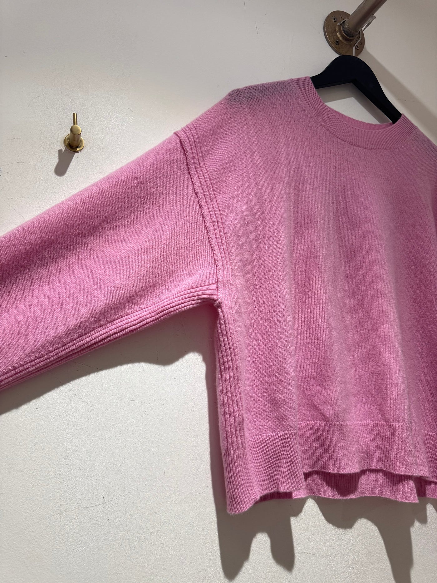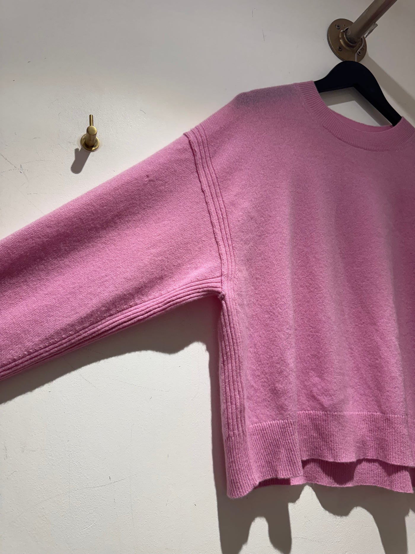 This preloved John Lewis cashmere jumper in bubblegum pink combines luxury with sustainability. The soft roundneck design and premium cashmere fabric deliver comfort and timeless style.