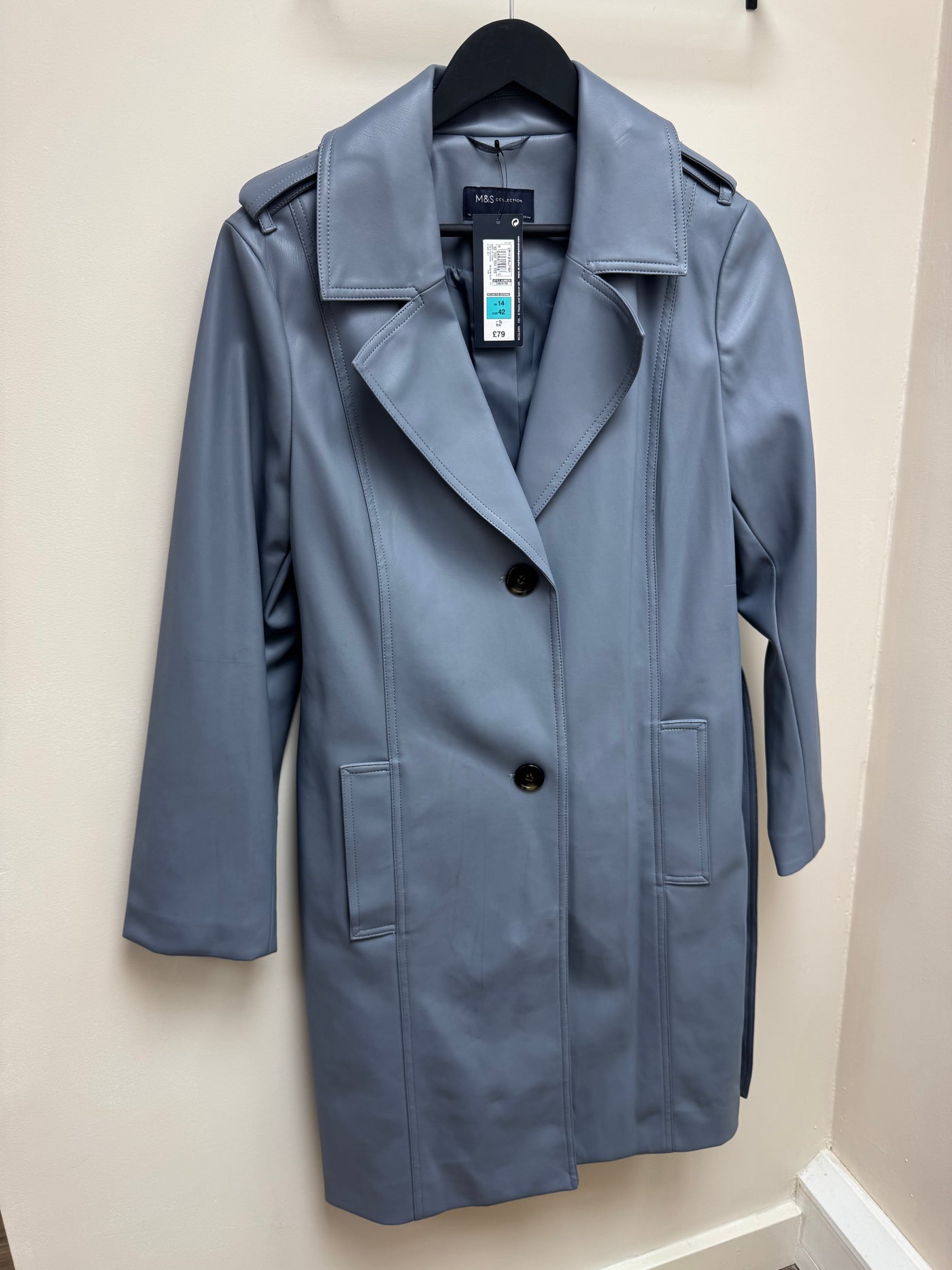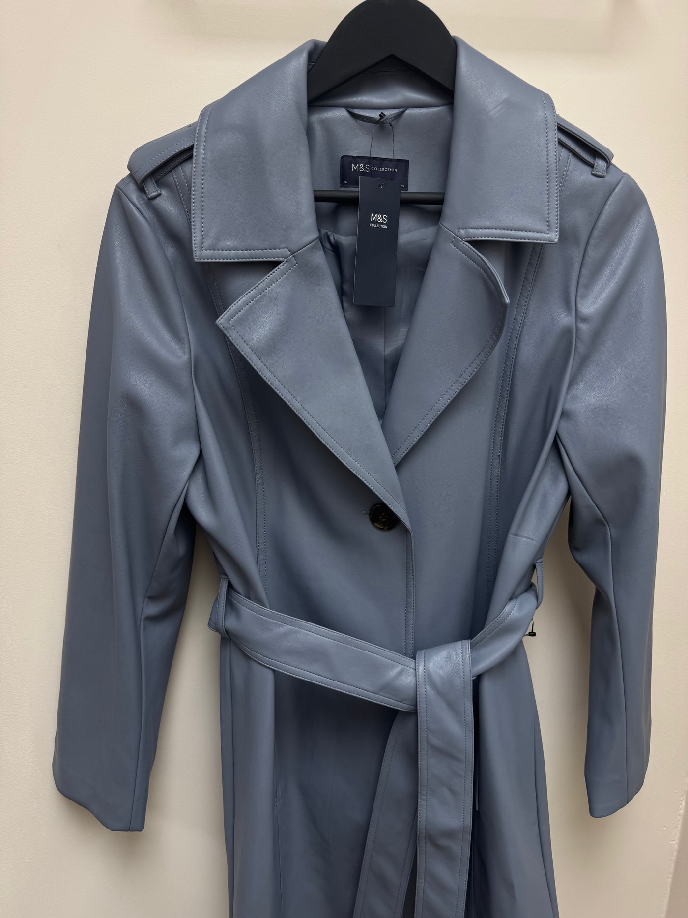 Introduce a touch of colour to your coat collection with this preloved M&S Collection faux leather trench. A versatile piece that works equally well over smart trousers or relaxed weekend wear, adding quiet style to any season.