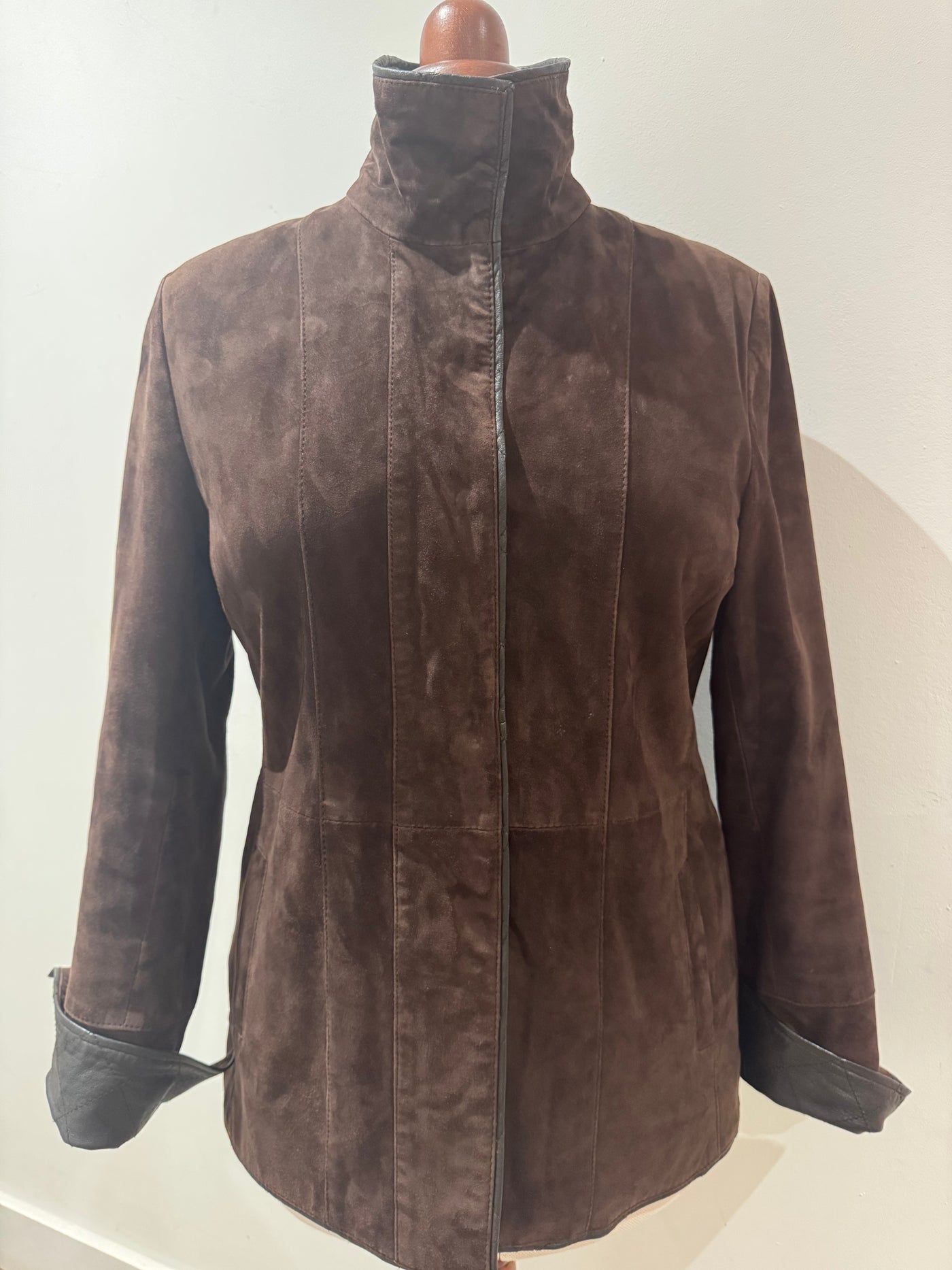 A beautifully crafted John Lewis suede jacket in a rich brown tone, offering a timeless and sophisticated outerwear option. The soft suede finish and structured silhouette make it a versatile layering piece that pairs effortlessly with both casual and smart outfits.