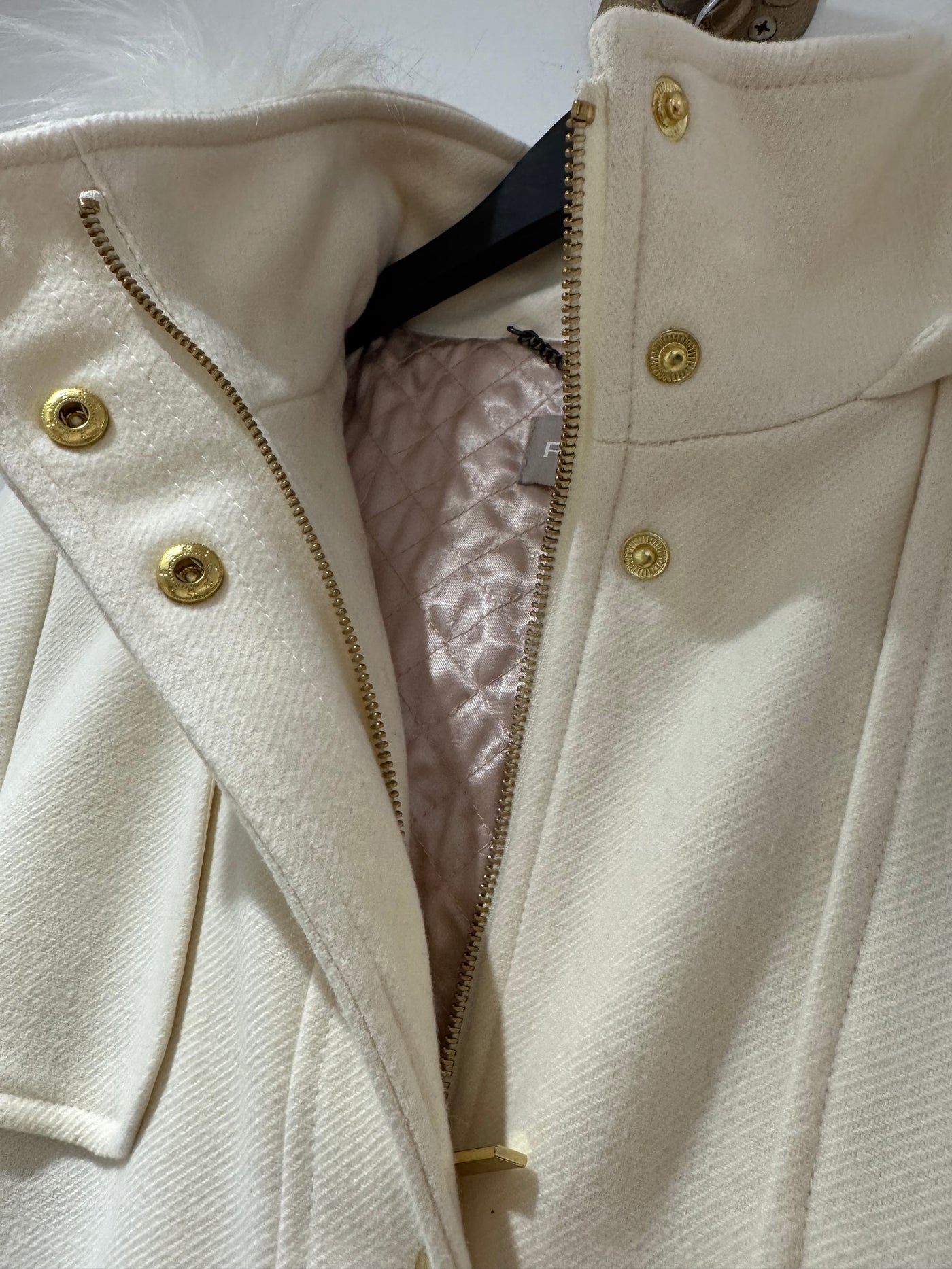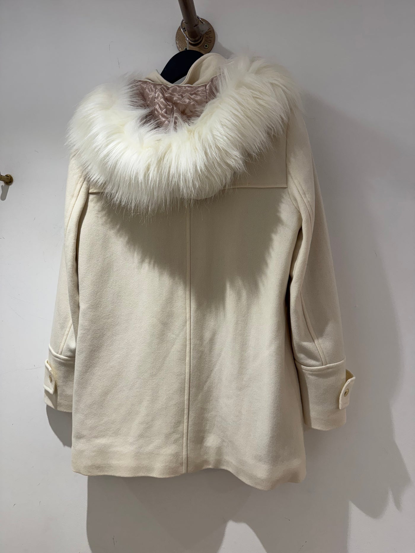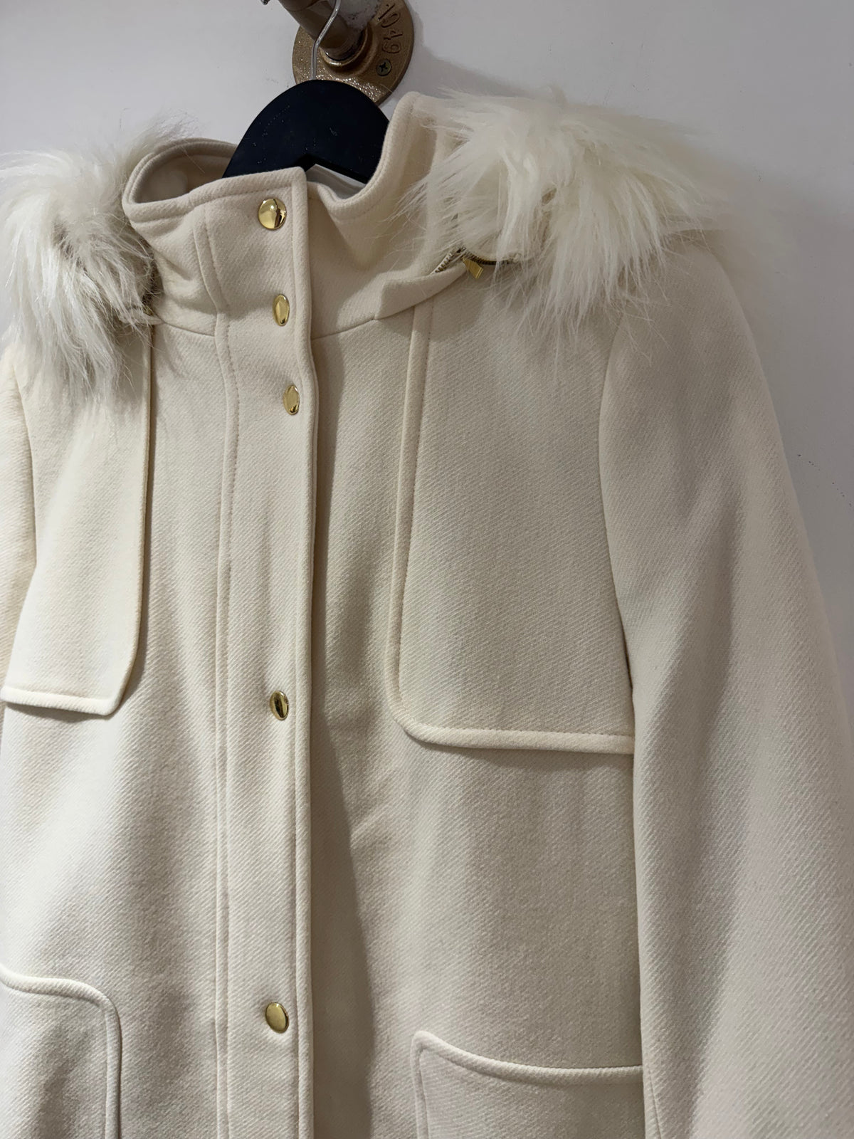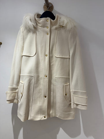 Inform when this item available: Planet Cashmere blend faux fur hooded coat Cream Size 10
