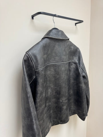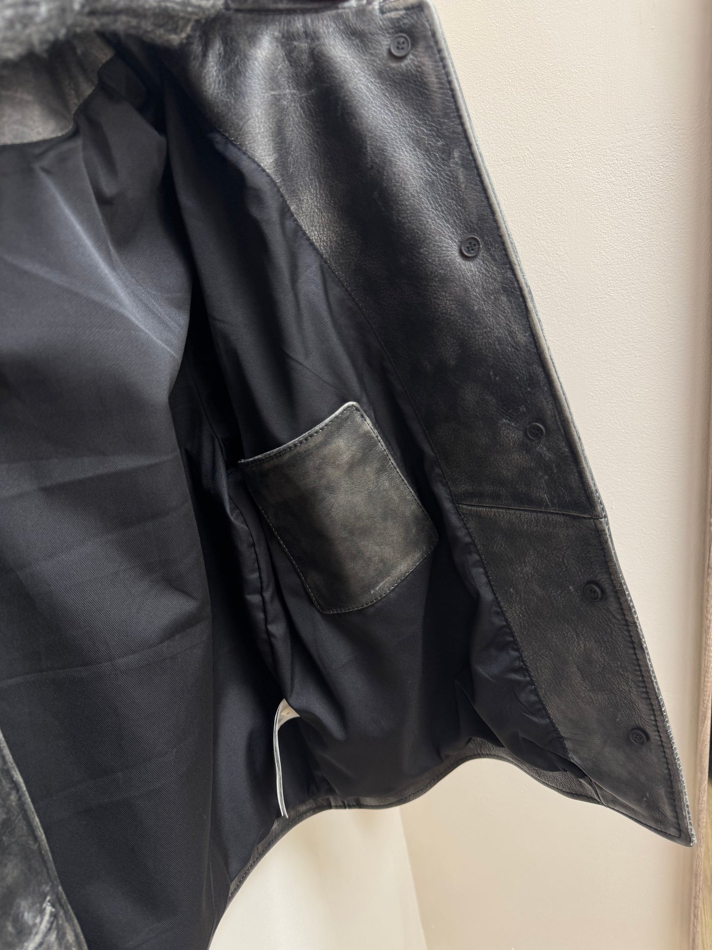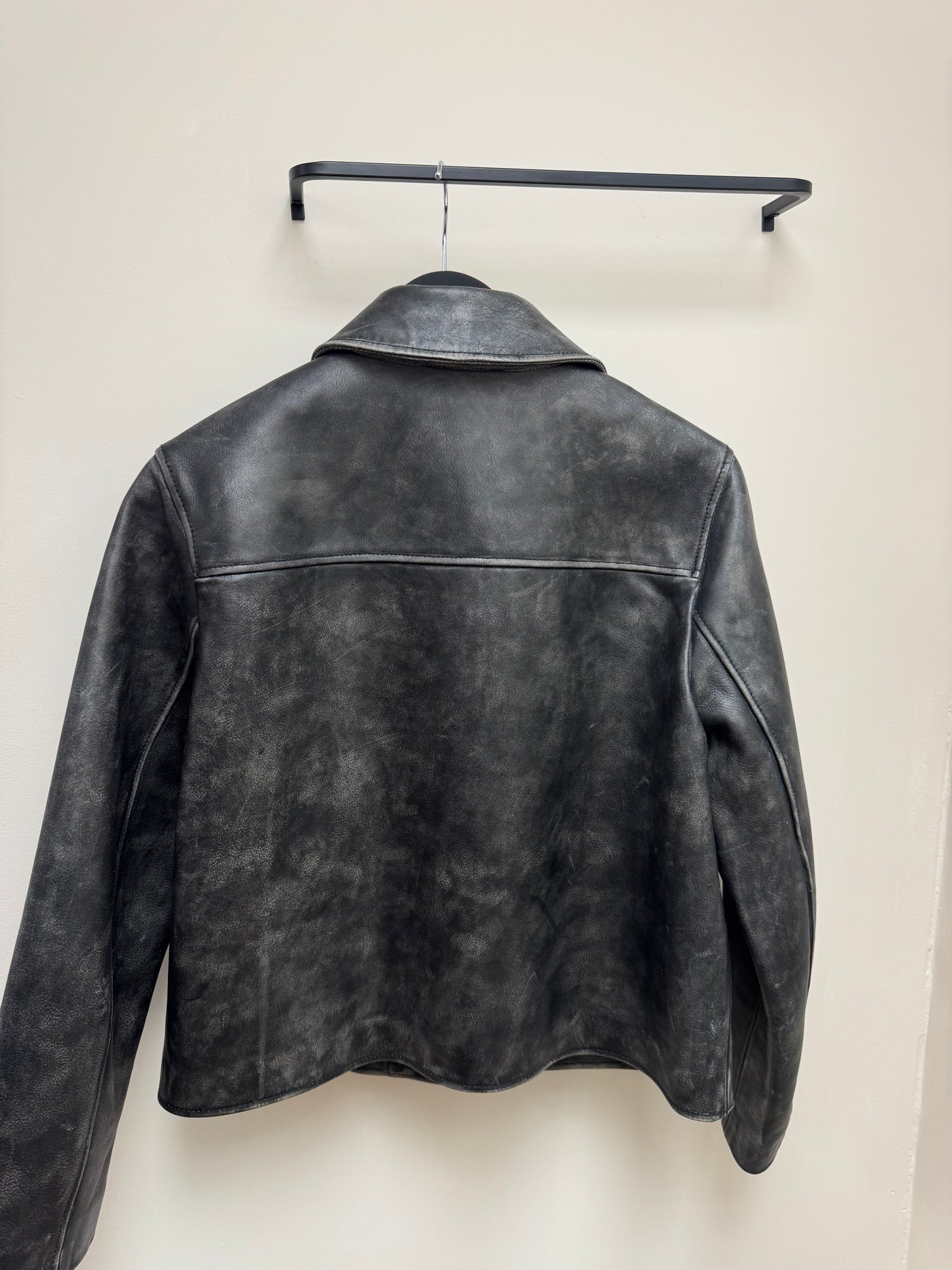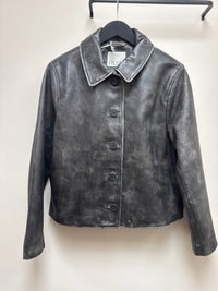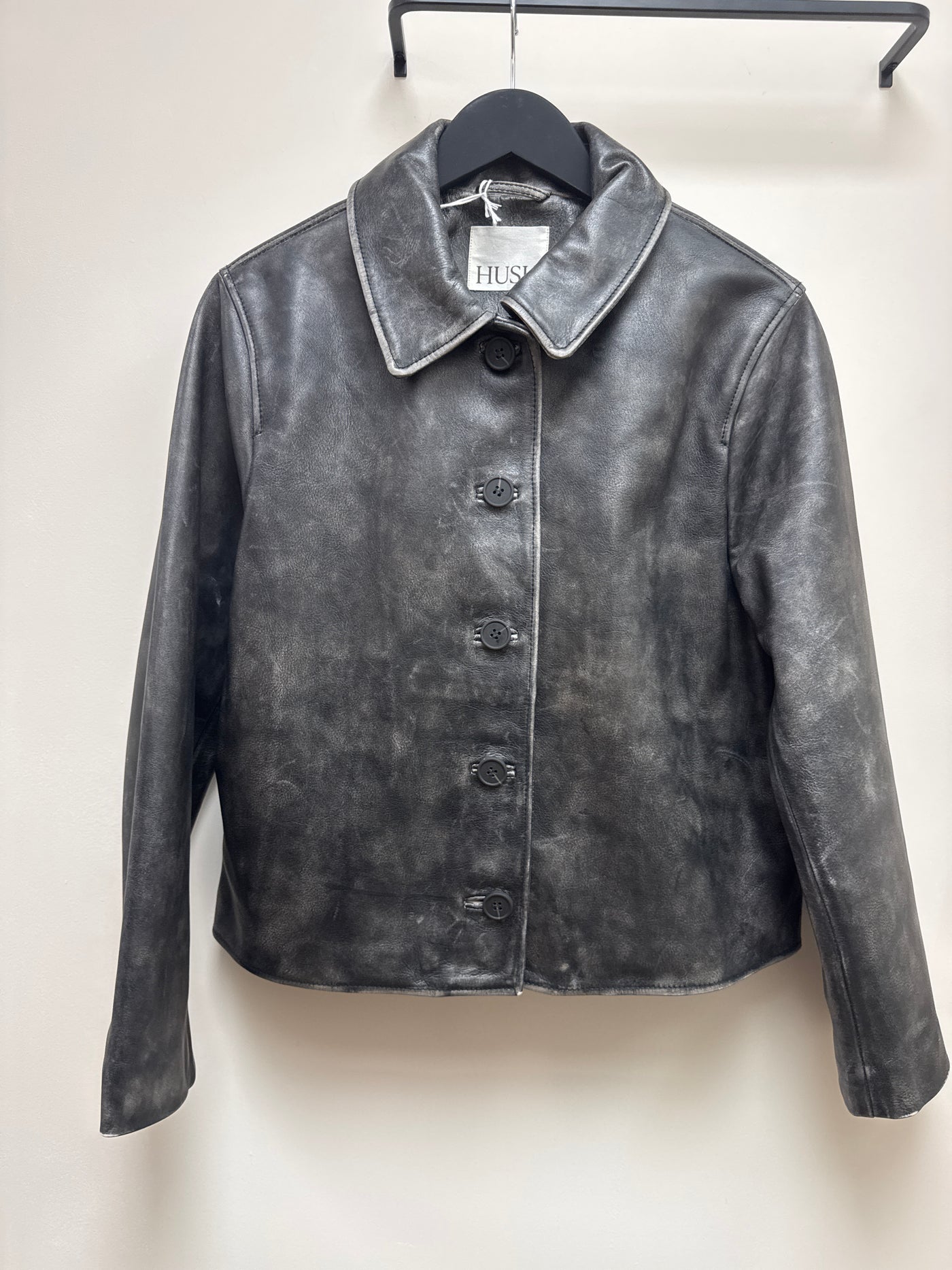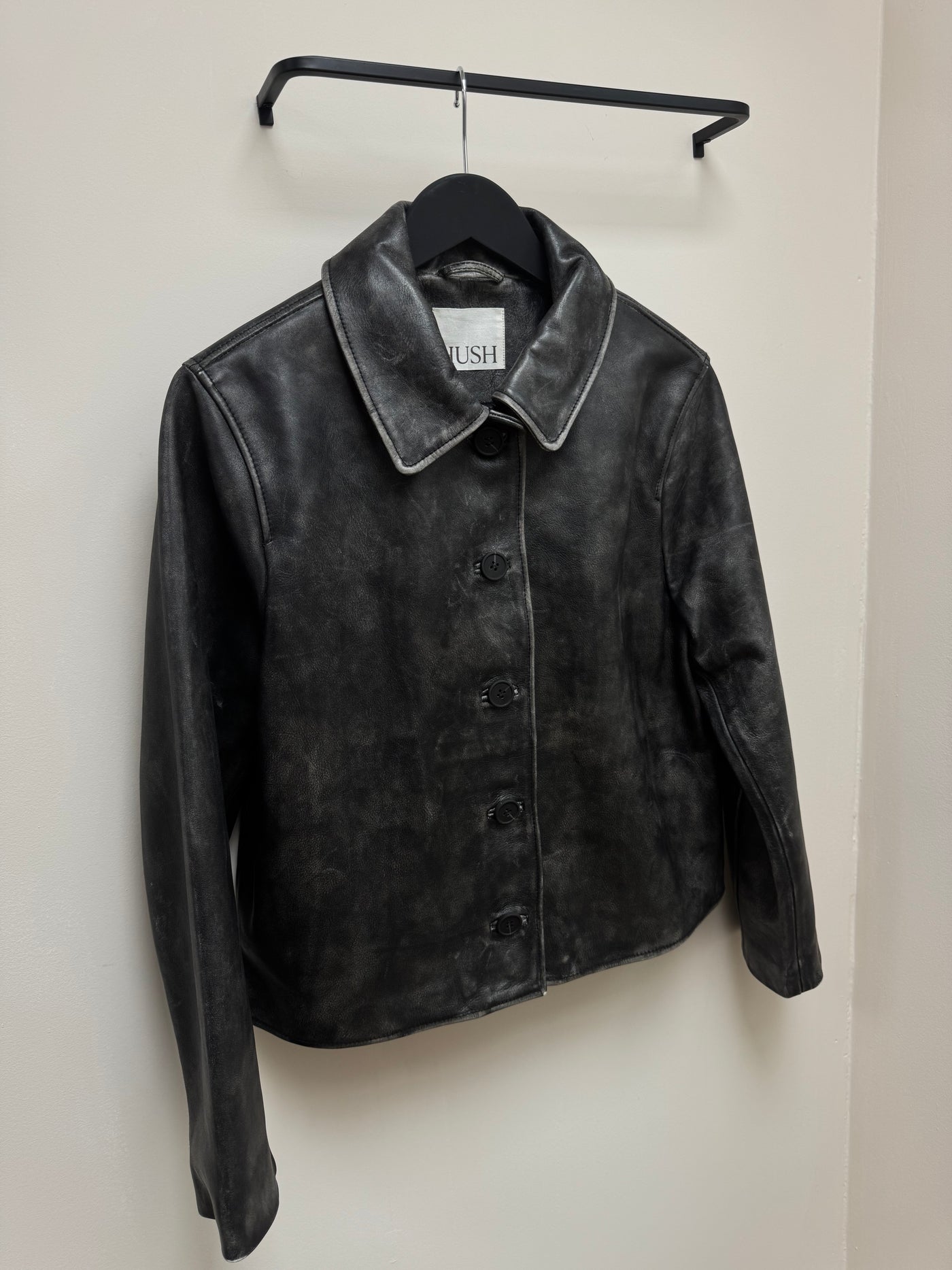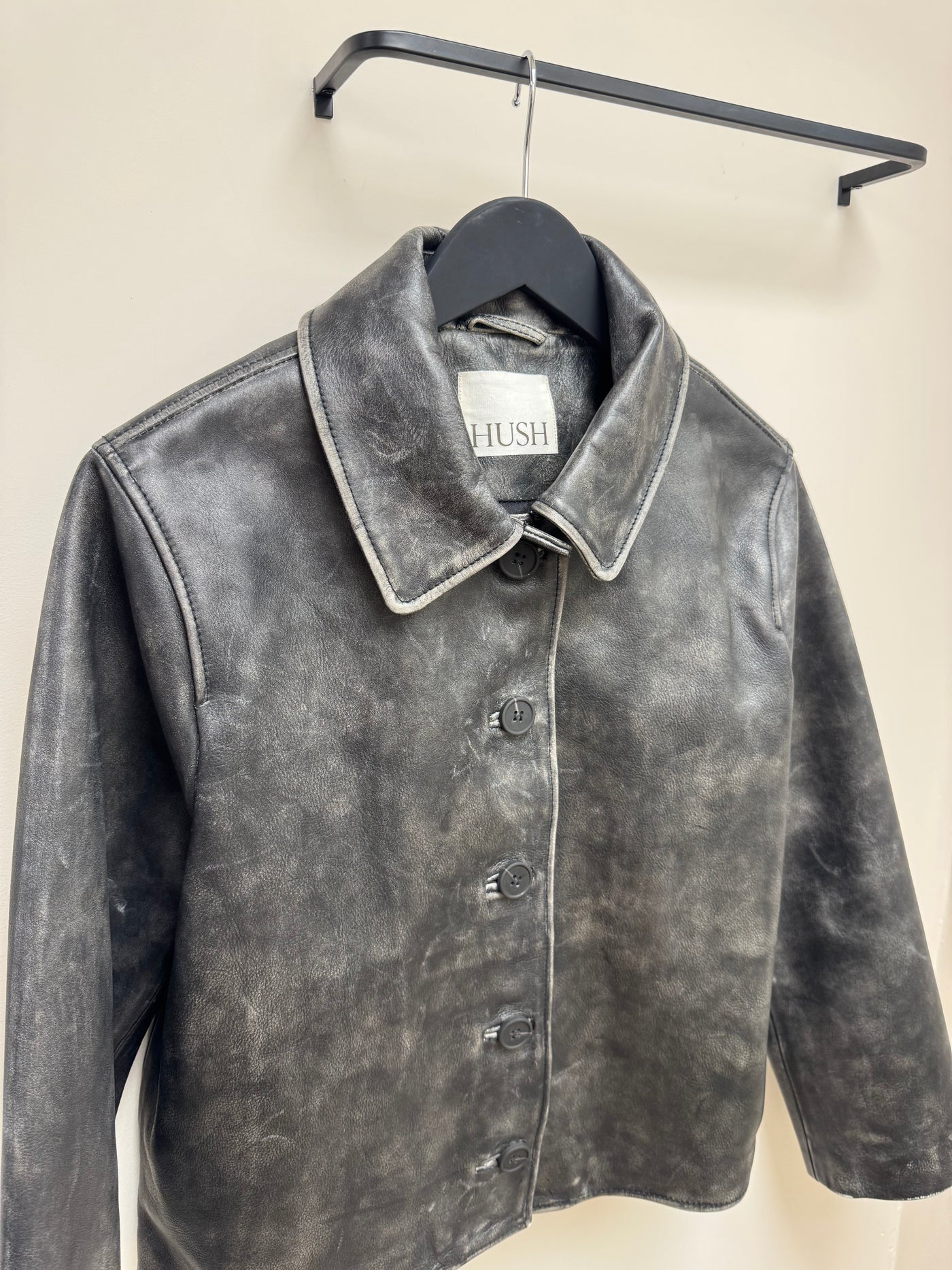 A vintage distressed look meets modern design in this preloved Hush Ana leather jacket. The washed black finish and boxy cut keep it feeling fresh and current.