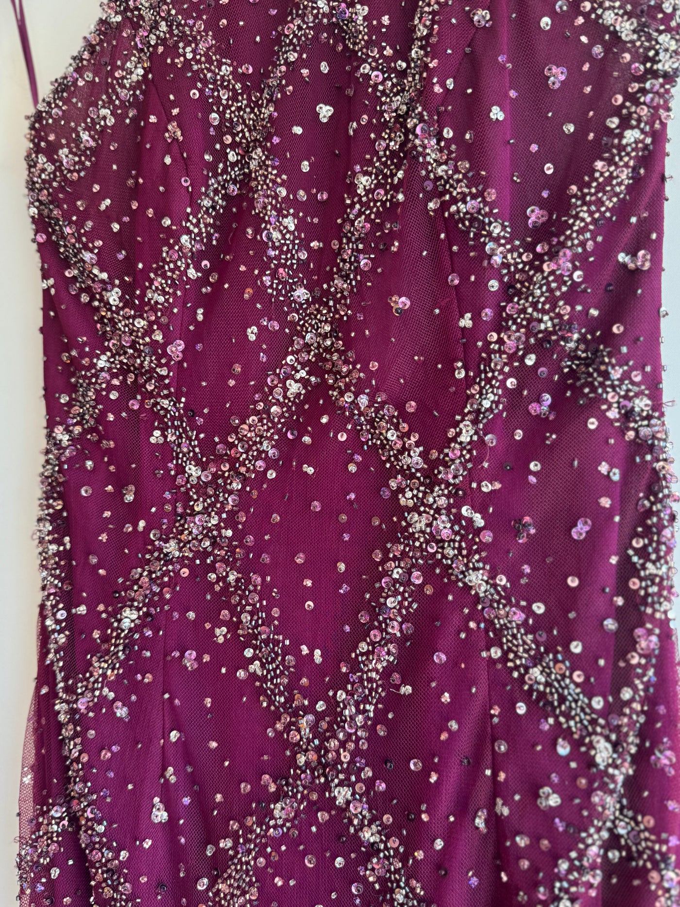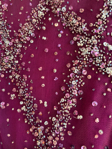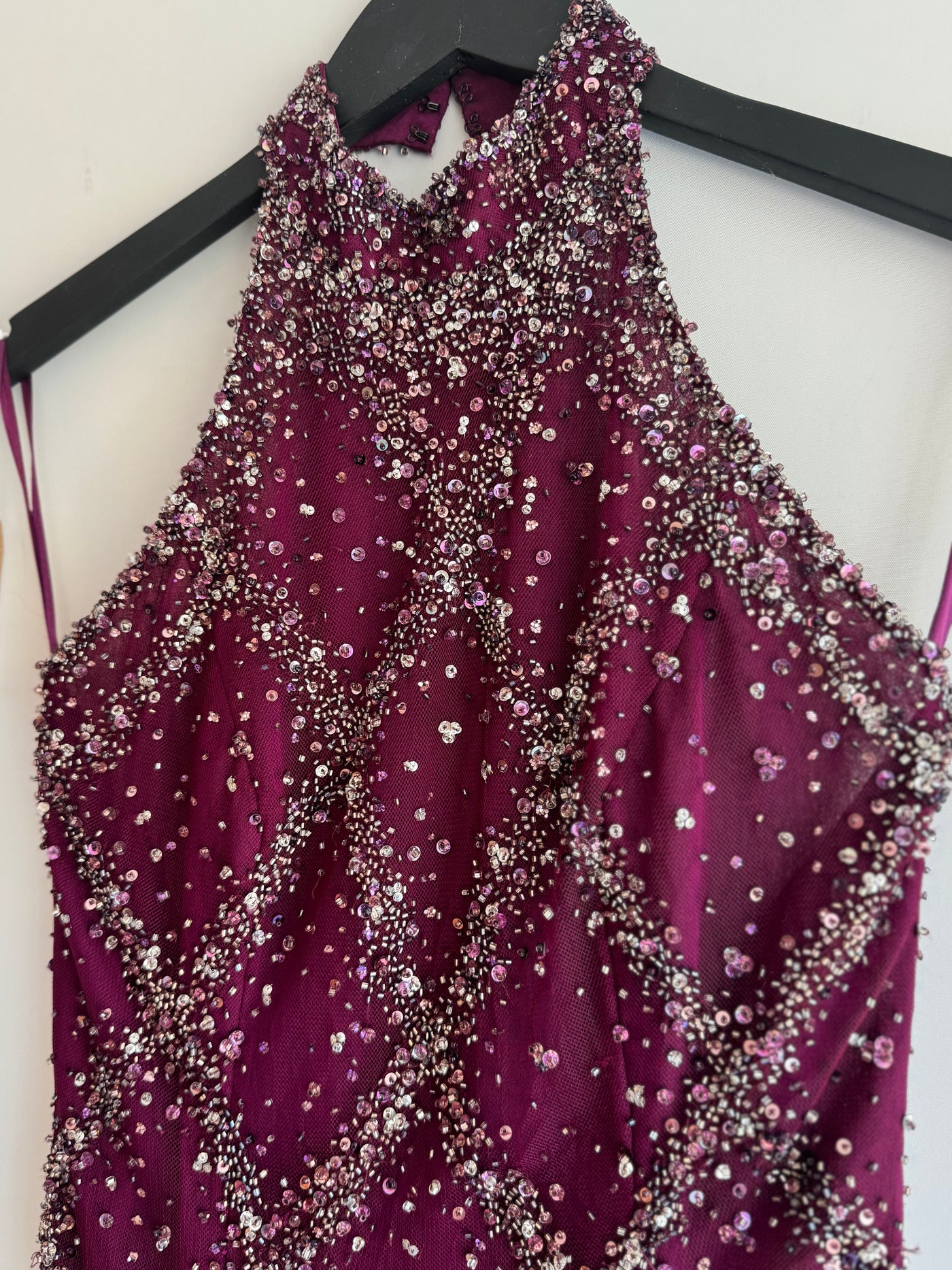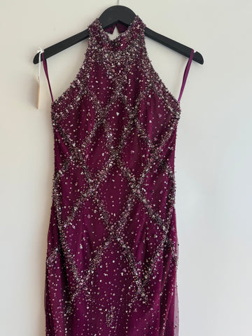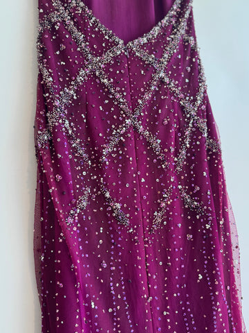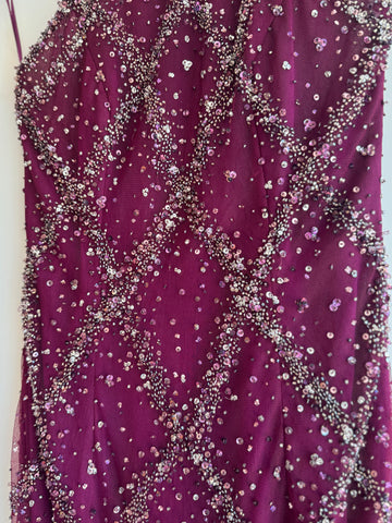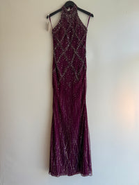 The NY based designer Stephen Yearick was renowned for his show stopping glamorous designs. Focused on bridal and evening wear his gowns were often heavily embellished and featured crystal beadwork. You too can own one of his creations! We are thrilled to be selling this stunning vintage halter neck dress, with a low back, in a gorgeous magenta shade.