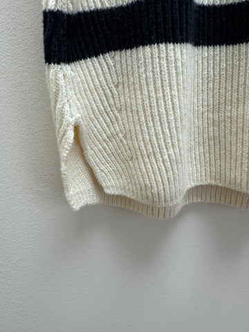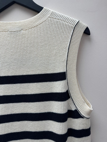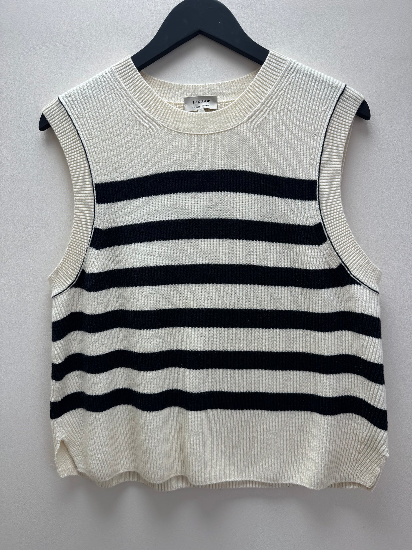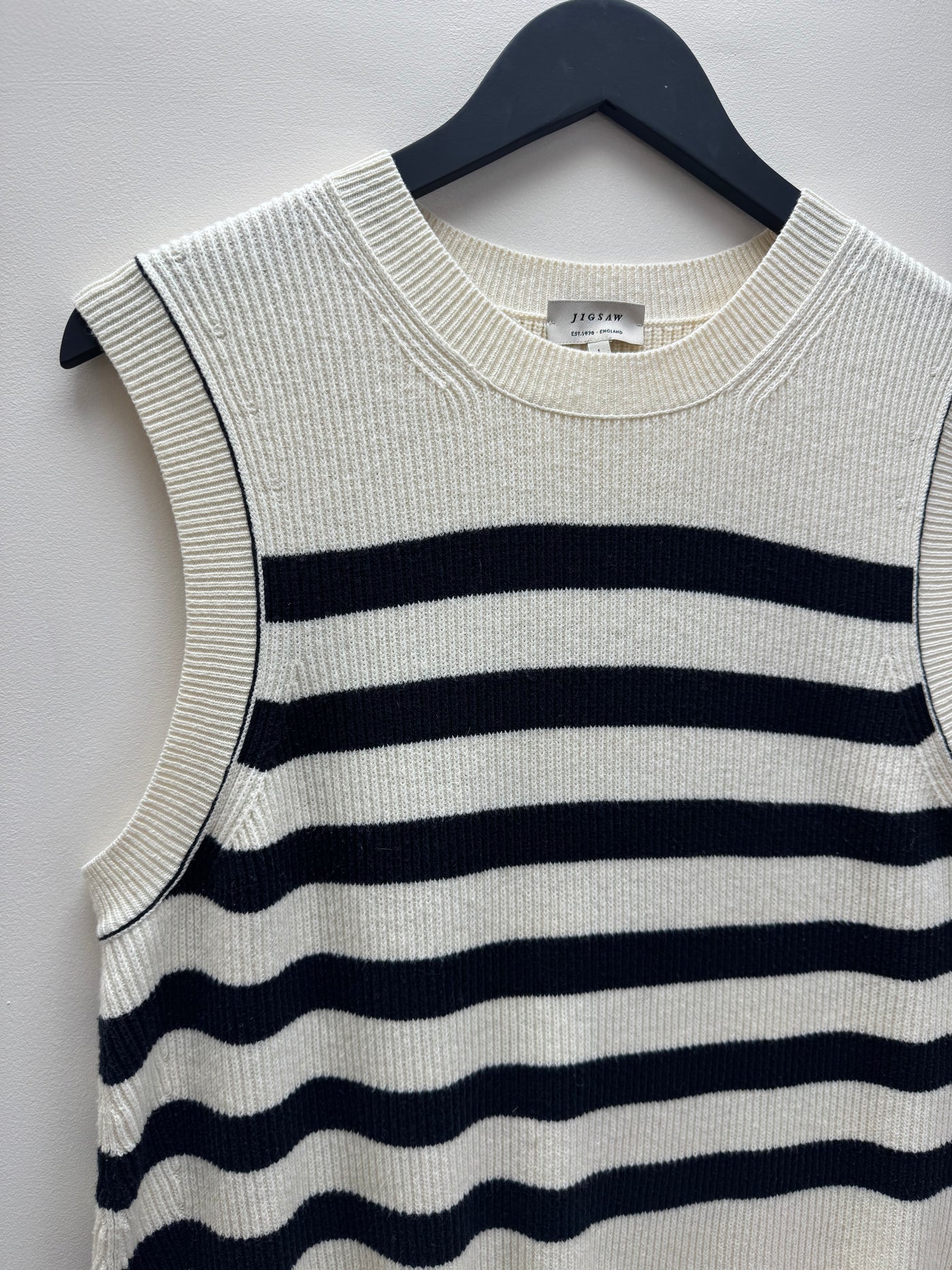 A beautiful knit you can wear now and later, this navy and cream vest from Jigsaw is a versatile staple for every season. In milder weather, style it on its own with chinos or denim shorts. When temperatures drop, layer it over a ruffle-neck blouse or a slim-fit top for an effortlessly elevated look.
