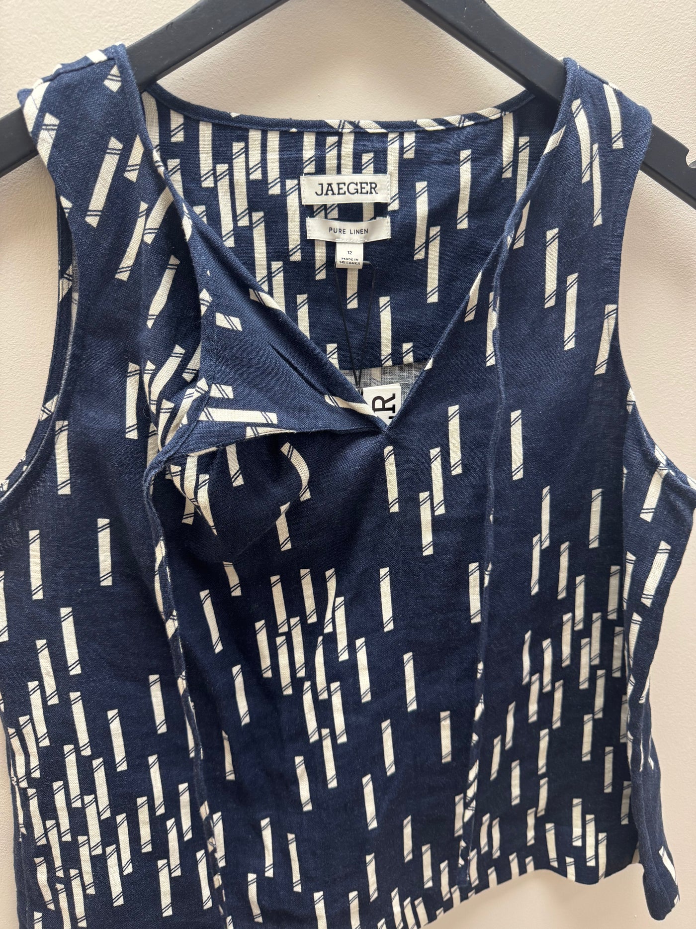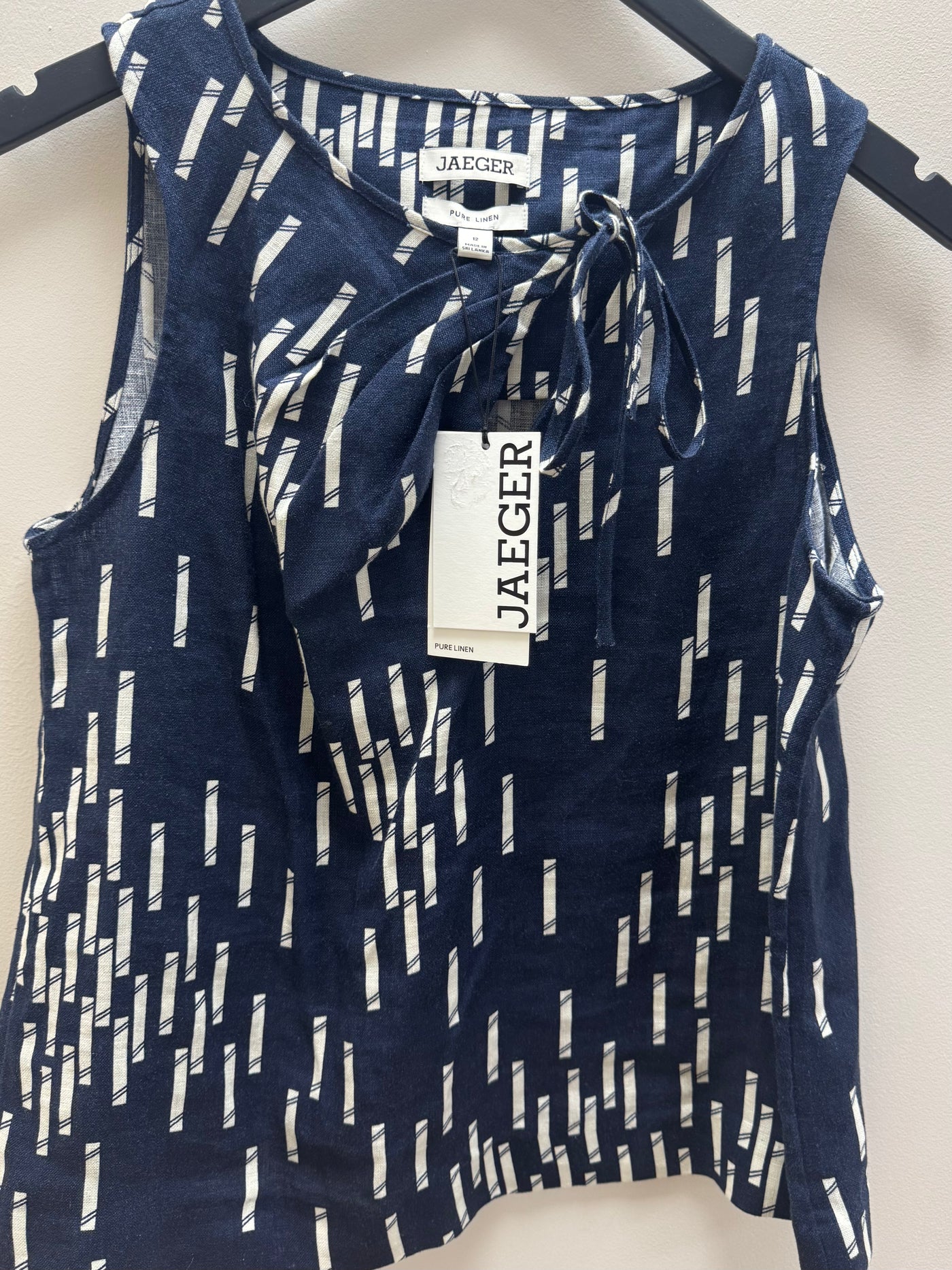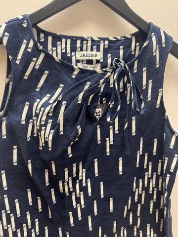 A lightweight Jaeger linen top in a navy and white print, perfect for warm-weather dressing with an effortlessly polished feel.