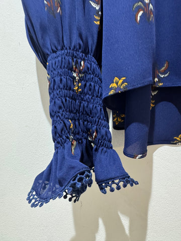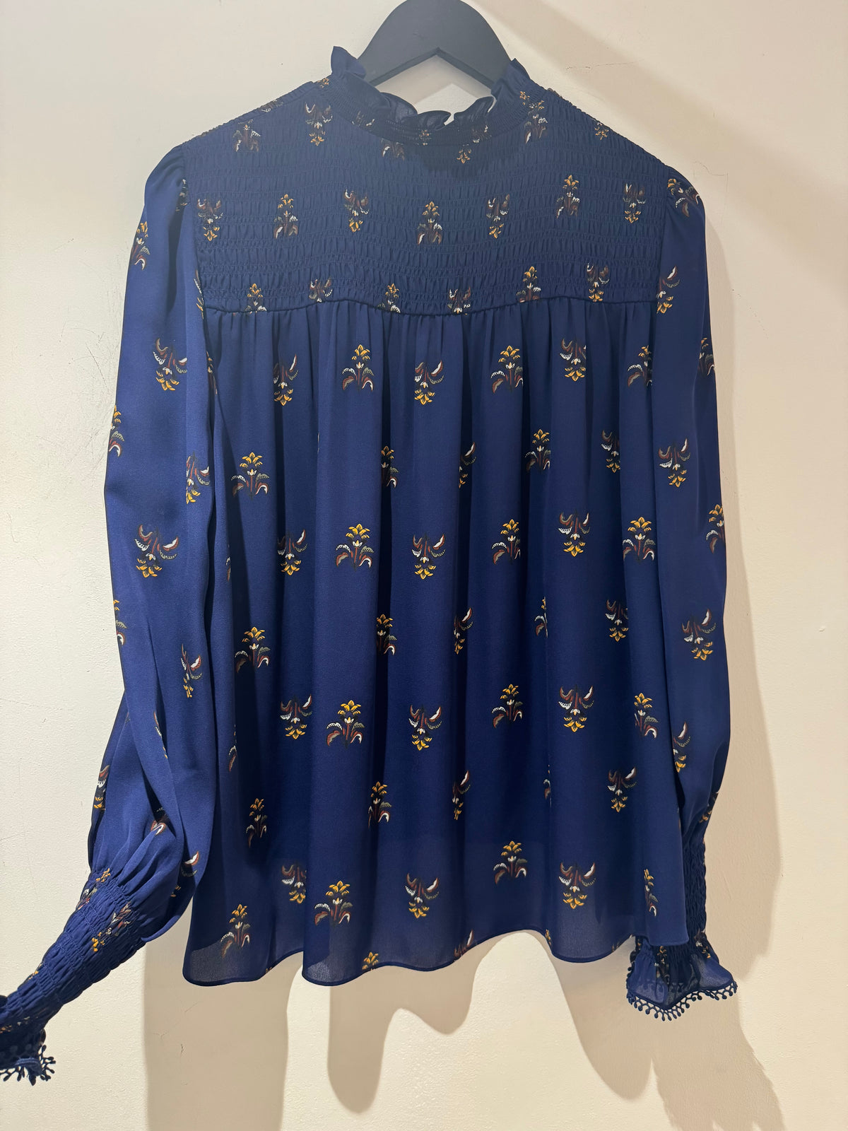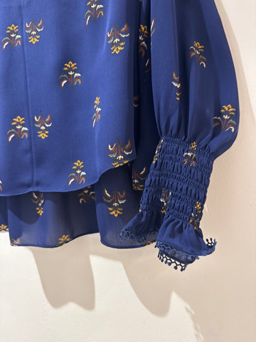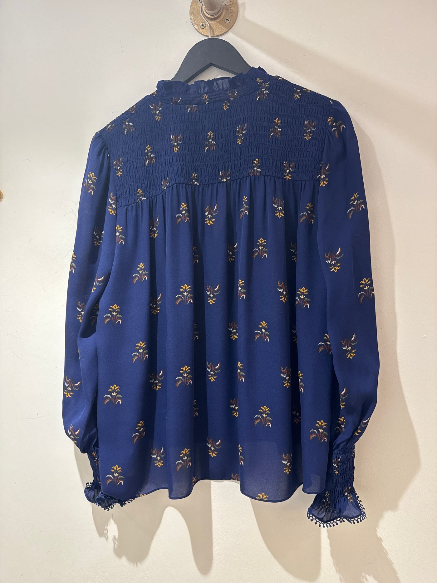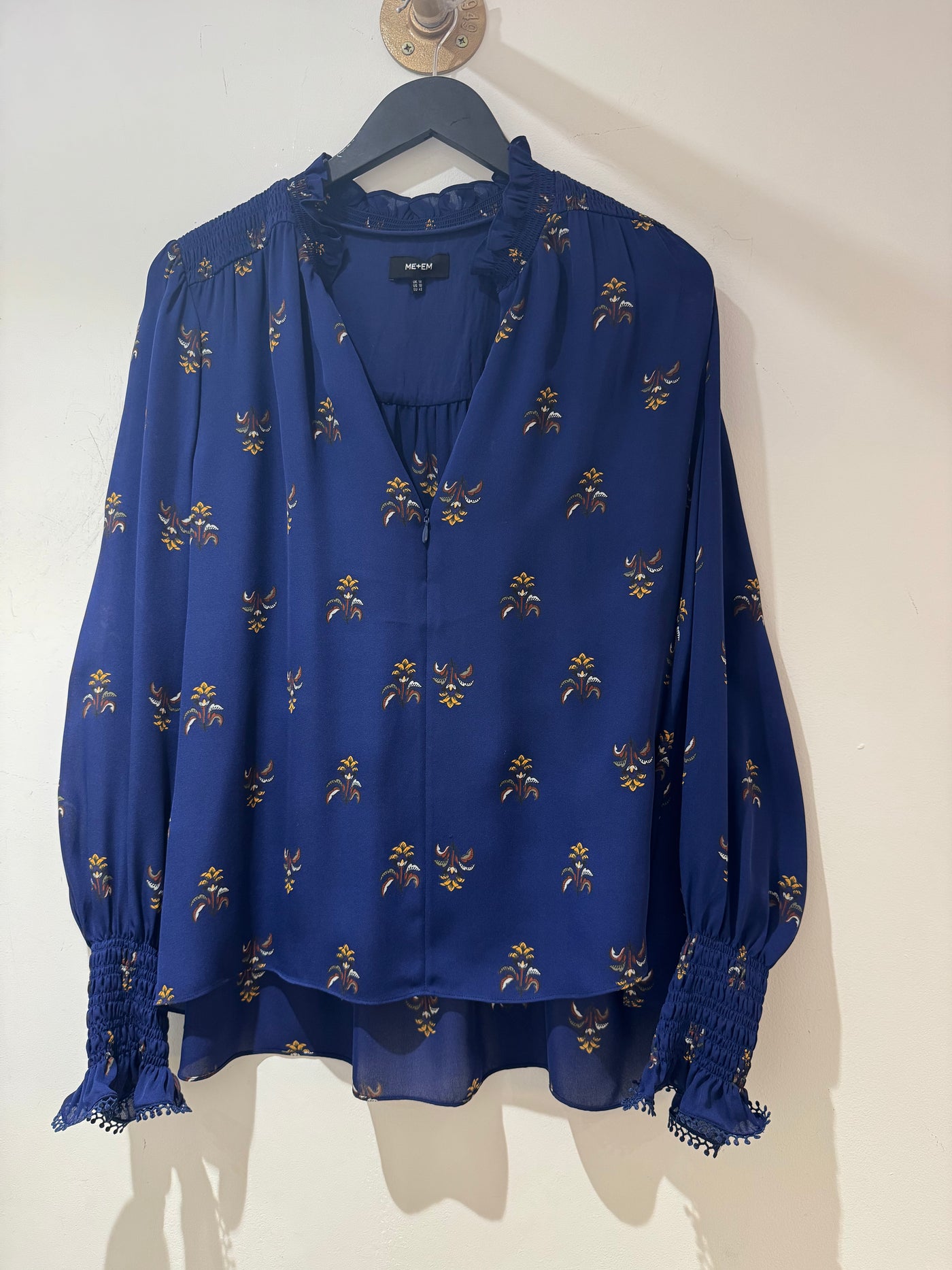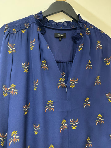 Elevate your wardrobe with this stunning ME+EM silk floral print blouse in a chic navy and yellow palette. Crafted from 100% premium silk, this blouse offers an elegant drape, luxurious feel, and the impeccable quality ME+EM is loved for. The vibrant floral print brings a fresh, modern edge while still feeling timeless and effortlessly wearable.