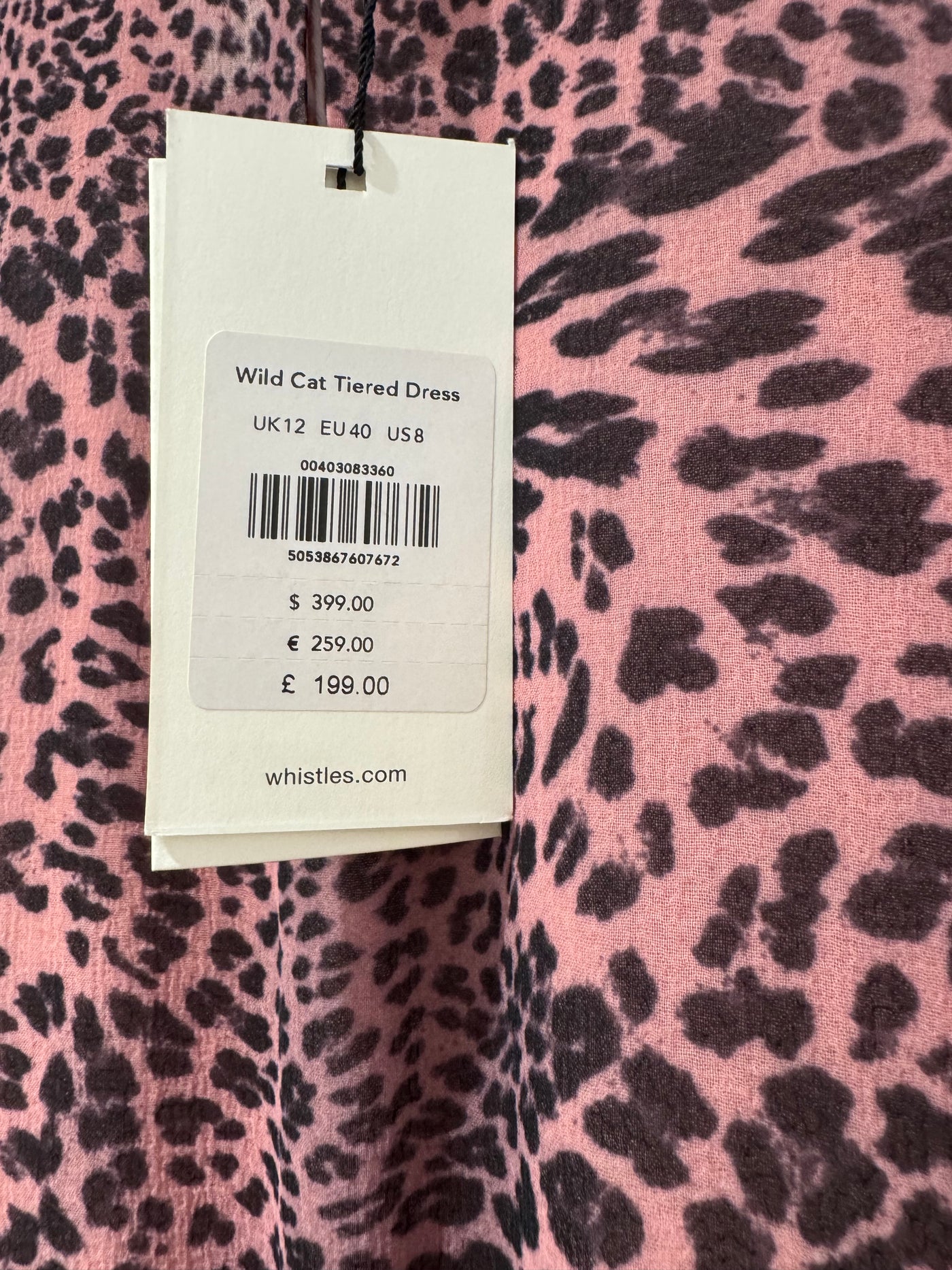 Discover the Whistles Wild Cat Tiered Dress which is unworn and new with tags — a chic, feminine piece featuring a bold animal print and effortless tiered silhouette. Perfect for day-to-night styling, this sustainable wardrobe staple offers premium quality at an affordable price.
