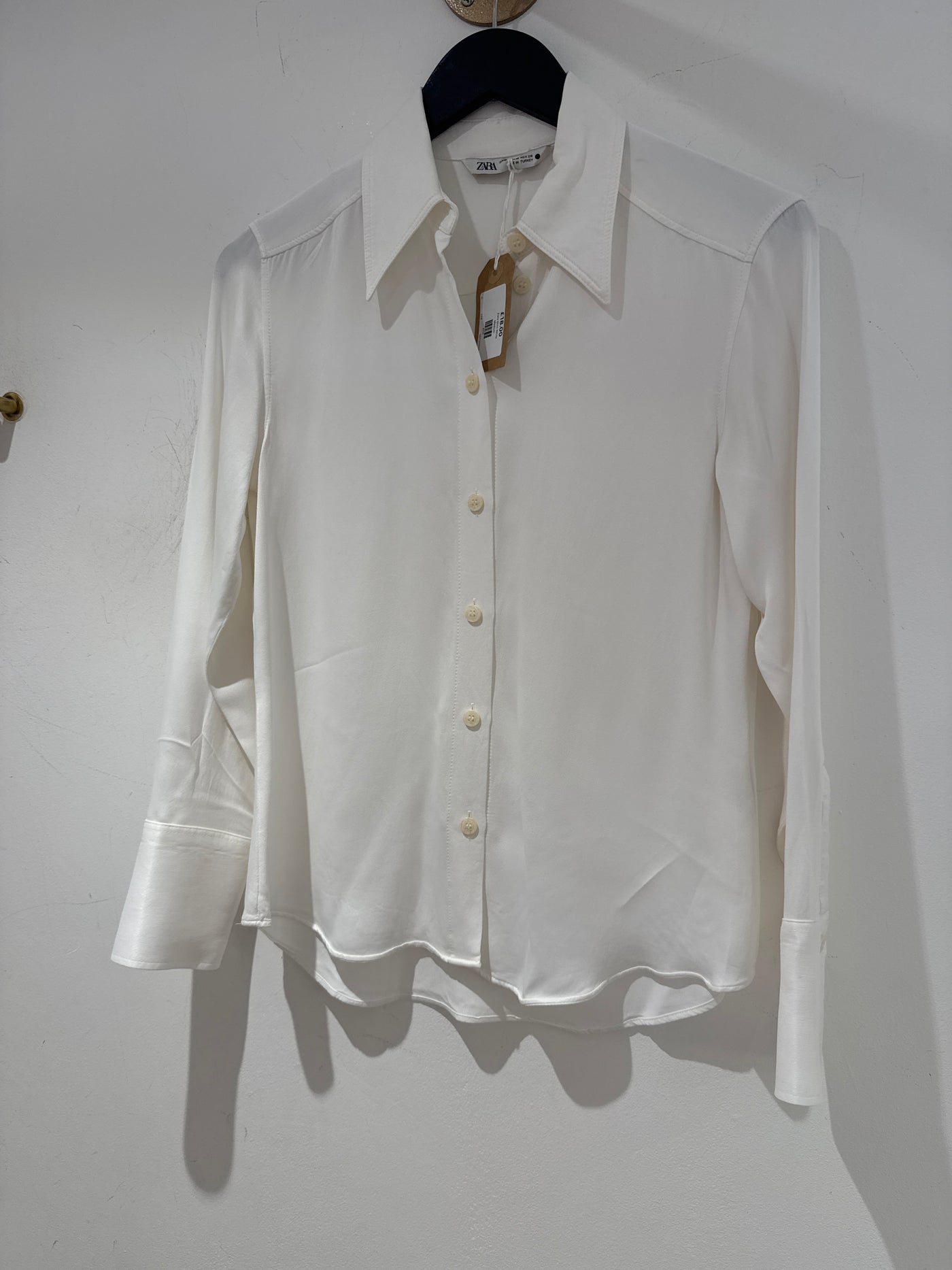 A true wardrobe essential, this classic white Zara shirt brings crisp sophistication to any outfit. Cut from smooth, lightweight fabric, it offers a flattering fit that transitions seamlessly from workday polish to weekend ease.