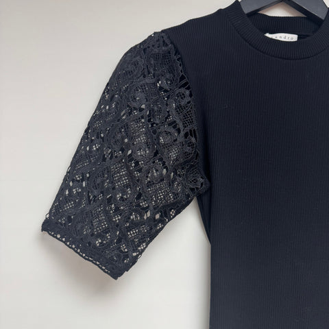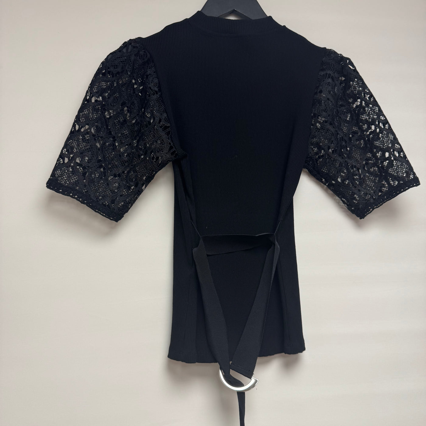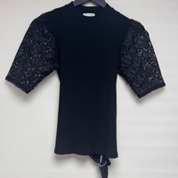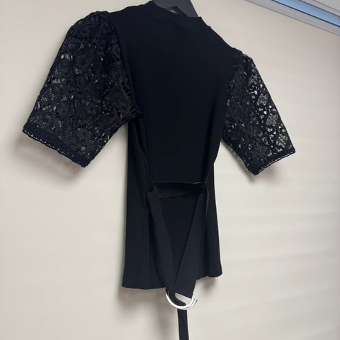 We love this preloved Sandro top to elevate your outift for the festive season. This elegant ribbed top features balloon style sheer lace sleeves and a versatile ribbon tie waist for a chic, adjustable fit.