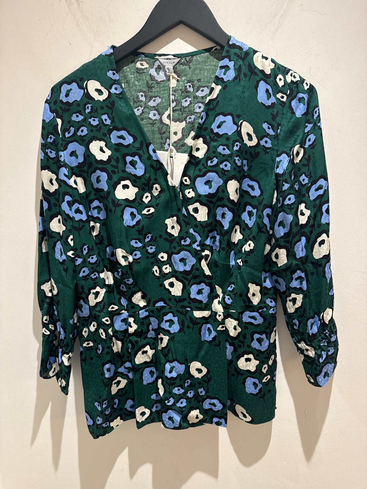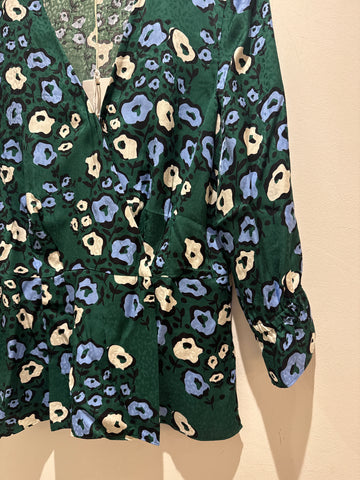 Jigsaw Graphic Poppy wrap top Green/blue Size 12