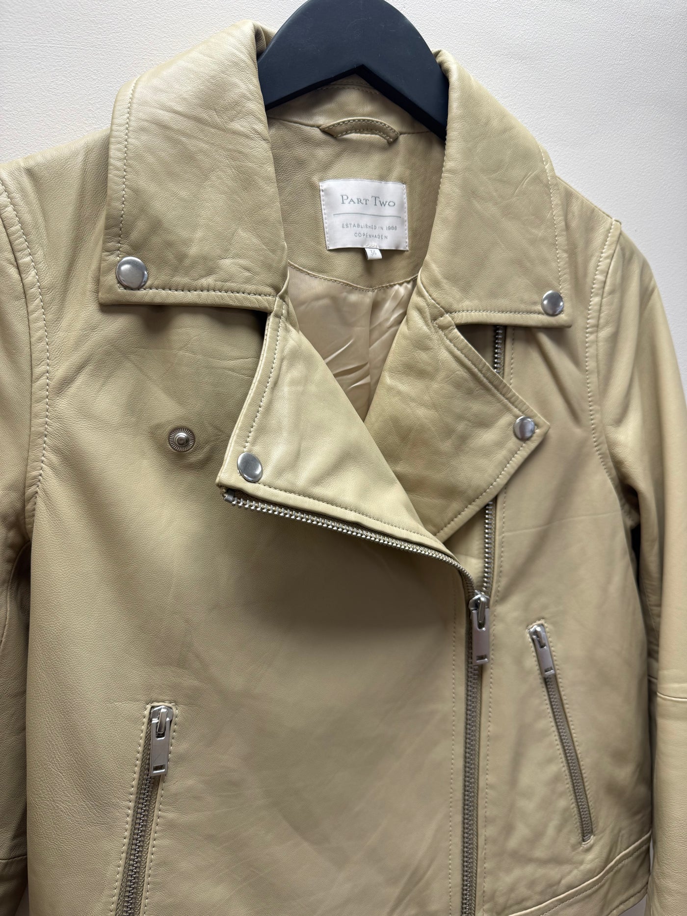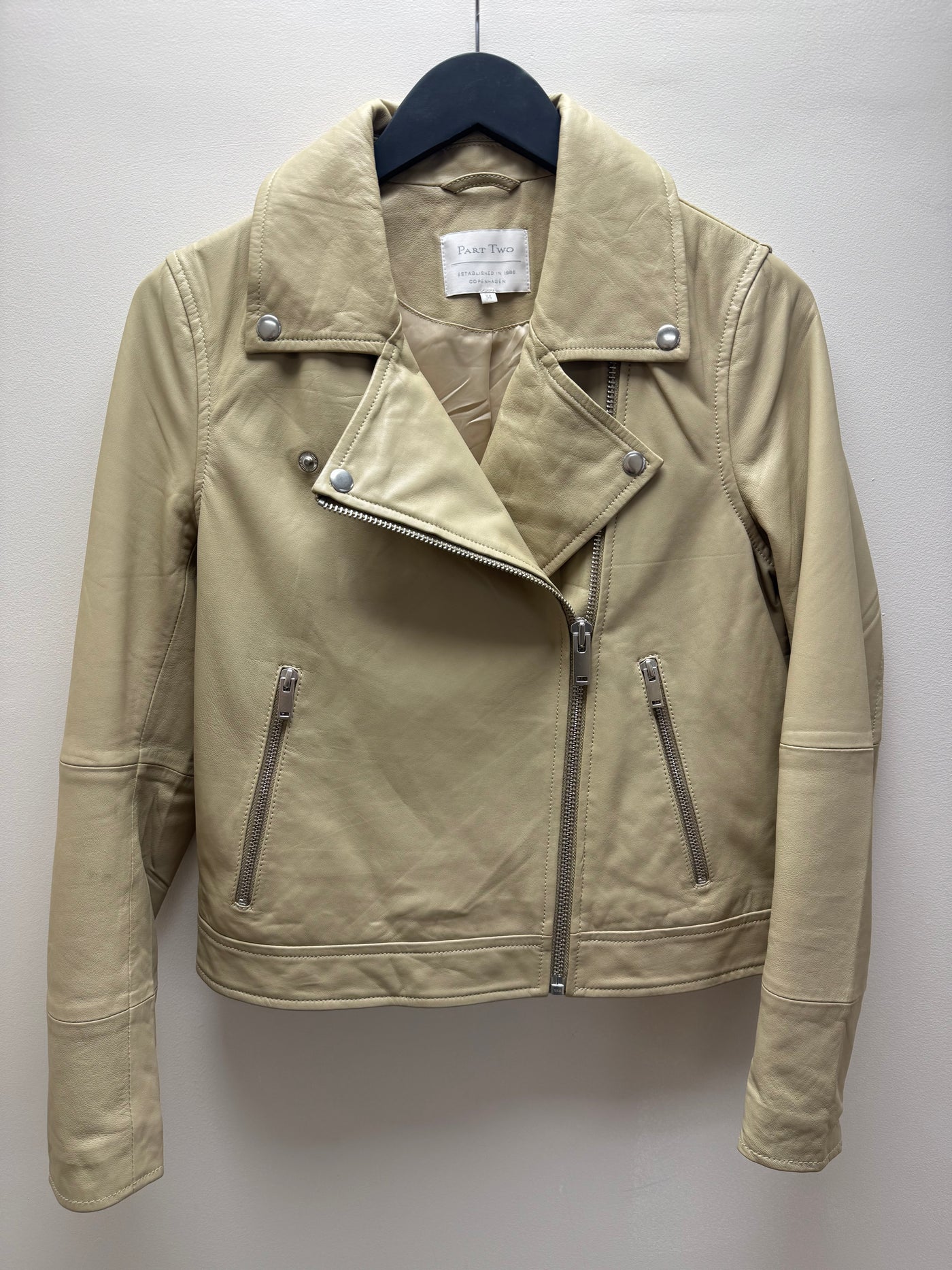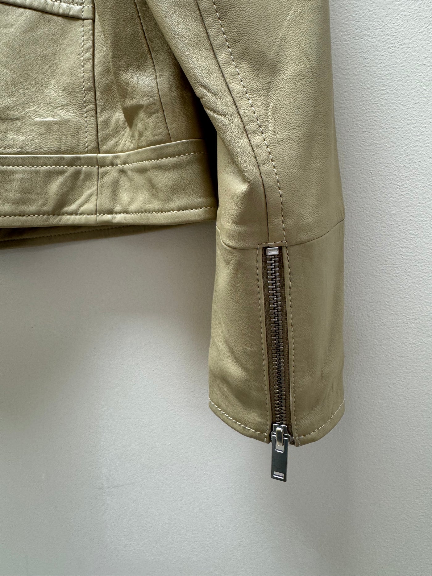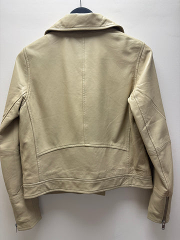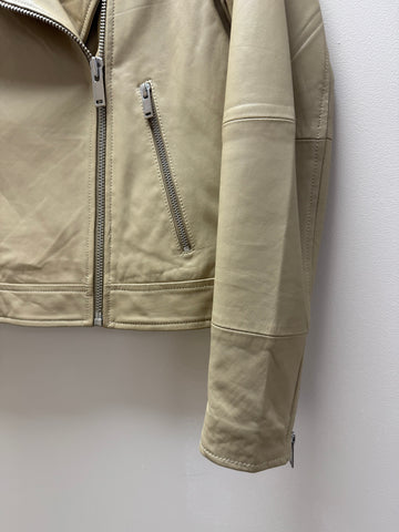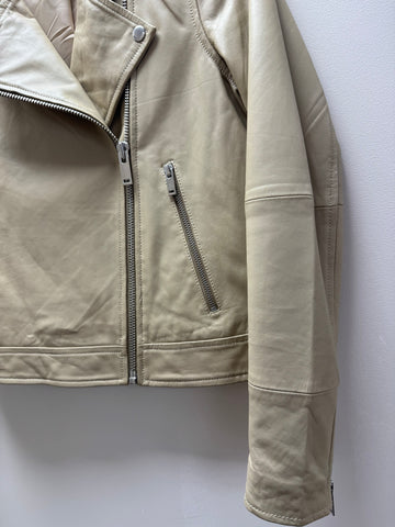 This soft leather jacket brings timeless biker attitude to any wardrobe. Designed with an asymmetric zip and classic collar, it offers a clean, modern silhouette thanks to its shorter length. Perfect for pairing with both jeans and dresses, it’s a versatile piece that elevates everyday looks.
